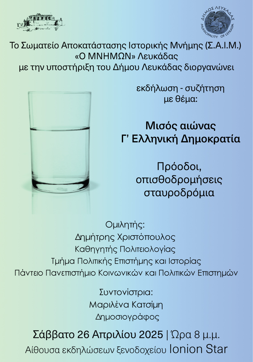 ΑΝΑΚΟΙΝΩΣΕΙΣ - ΔΕΛΤΙΑ ΤΥΠΟΥ Εκδήλωση Σωματείου Αποκατάστασης Ιστορικής Μνήμης (Σ.Α.Ι.Μ.) Ο Μνήμων Λευκάδας Από admin - 23 Απριλίου 2025 0 743 FacebookTwitterPinterestWhatsApp