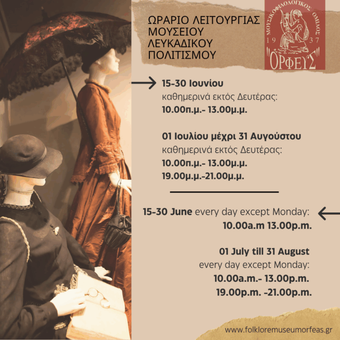 Το μουσείο θα είναι ανοιχτό για την καλοκαιρινή περίοδο ως εξής: