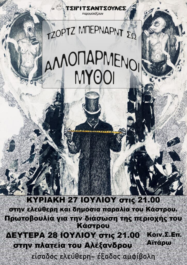 ΠΟΛΙΤΙΣΜΟΣ Οι Τσιριτσάντσουλες παρουσιάζουν τη θεατρική παράσταση “Αλλοπαρμένοι Μύθοι του Τζορτζ Μπέρναρντ Σω” Από admin - 23 Ιουλίου 2025 0 389 FacebookTwitterPinterestWhatsApp SHAW_DELTIO_TYPOUΛήψη