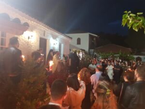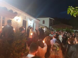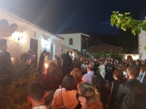 Μια ανάσταση διαφορετική λόγω  της πανδημίας φορώντας  μάσκες και τηρώντας αποστάσεις στον αύλειο χώρο του μοναστηριού,  το «Χριστός Ανέστη» το είπε νωρίτερα ο πατερ-Δημήτριος , αλλα το είπε με δικό του τρόπο συμπαρασύροντας όλους τους πιστούς να ψάλουν το  χαρμόσυνο μύνημα.
