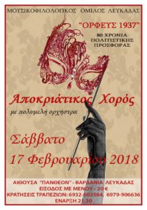 ΠΟΛΙΤΙΣΜΟΣΤΟΠΙΚΑ ΝΕΑ Αποκριάτικος χορός Ορφέα Από admin - 14 Φεβρουαρίου 2018 0 1459 FacebookTwitterPinterestWhatsApp Αποκριάτικος χορός του Ορφέα το Σάββατο 17 Φεβρουαρίου 2018 στο “ΠΑΝΘΕΟΝ” Τιμή εισόδου:20 ευρώ