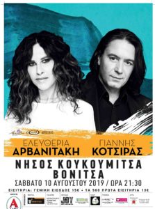 ΕΛΕΥΘΕΡΙΑ ΑΡΒΑΝΙΤΑΚΗ – ΓΙΑΝΝΗΣ ΚΟΤΣΙΡΑΣ  Σάββατο 10 Αυγούστου στη Βόνιτσα στη Νήσο Κουκουμίτσα / 21:30