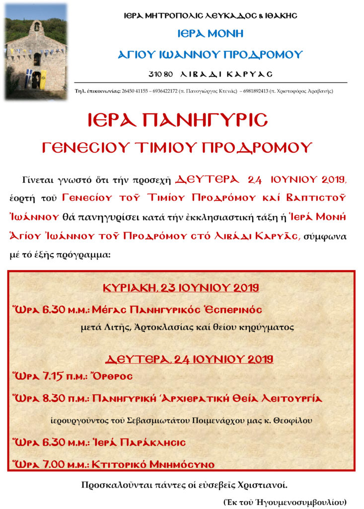 Χωρίς κατηγορία Εορτή στην Ἱερά Μονή Ἁγίου Ἰωάννου τοῦ Προδρόμου στό Λιβάδι Καρυᾶς Από admin - 22 Ιουνίου 2019 0 1253 FacebookTwitterPinterestWhatsApp
