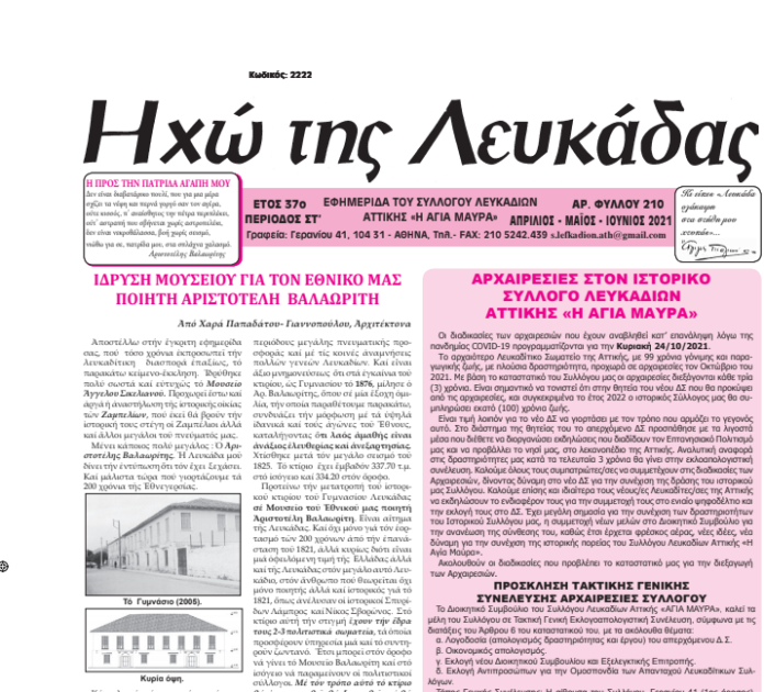 ΠΟΛΙΤΙΣΜΟΣ ΔΙΑΒΑΣΤΕ ΤΟ ΝΕΟ ΦΥΛΛΟ ΕΦΗΜΕΡΙΔΑΣ “ΗΧΩ ΤΗΣ ΛΕΥΚΑΔΑΣ” Από admin - 13 Ιουλίου 2021 0 973 FacebookTwitterPinterestWhatsApp ” Ηχώ της Λευκάδας “ΑΡ. ΦΥΛΛΟΥ 210