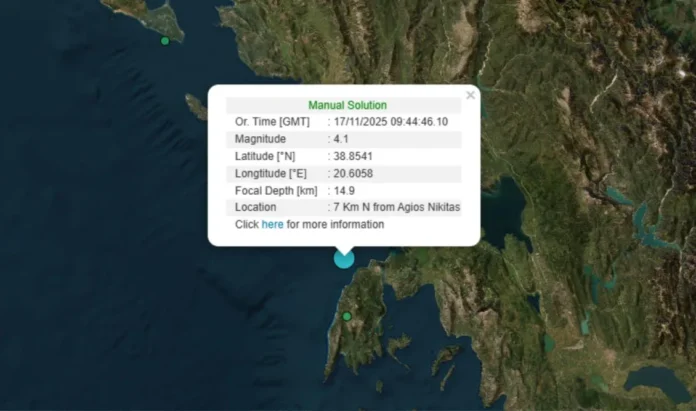 ΕΠΙΚΑΙΡΟΤΗΤΑ Λευκάδα: Σεισμός 4,1 Ρίχτερ Από admin - 17 Νοεμβρίου 2025 0 69 FacebookTwitterPinterestWhatsApp Σεισμική δόνηση 4,1 Ρίχτερ καταγράφηκε στη Λευκάδα το πρωί της Δευτέρας (17/11). Σύμφωνα με το Γεωδυναμικό Ινστιτούτο του Εθνικού Αστεροσκοπείου Αθηνών, το επίκεντρο του σεισμού εντοπίζεται στην περιοχή του Αγίου Νικήτα.