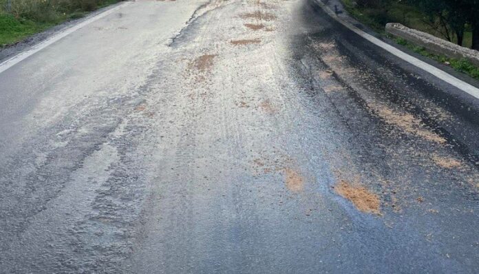 Νυδρί-Λευκάδα: Λάδια στο δρόμο – Προσοχή όσοι οδηγούν!