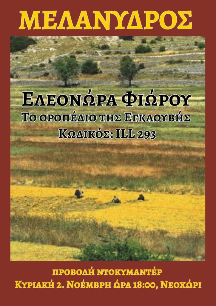 Ο ΜΕΛΑΝΥΔΡΟΣ φιλοξενεί την Κυριακή, 2 Νοέμβρη και ώρα 18:00 στο Νιοχώρι την Ελεονώρα Φιώρου και σας προσκαλεί στην προβολή του βραβευμένου ντοκιμαντέρ της με τίτλο: