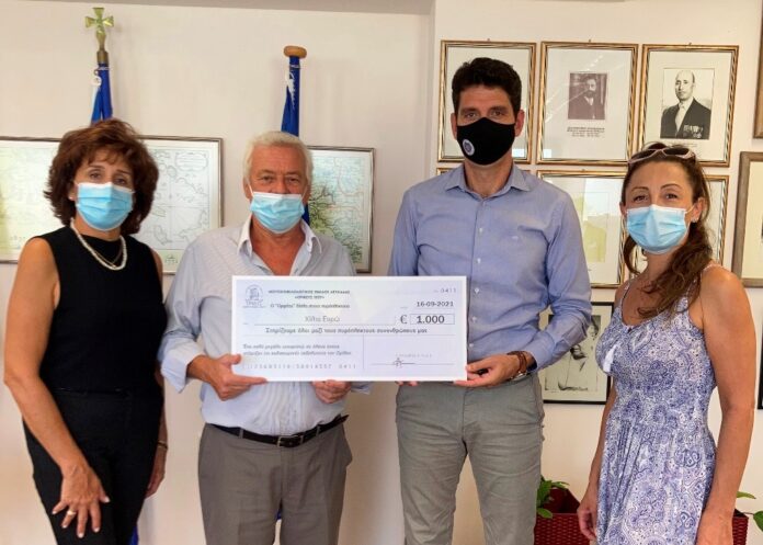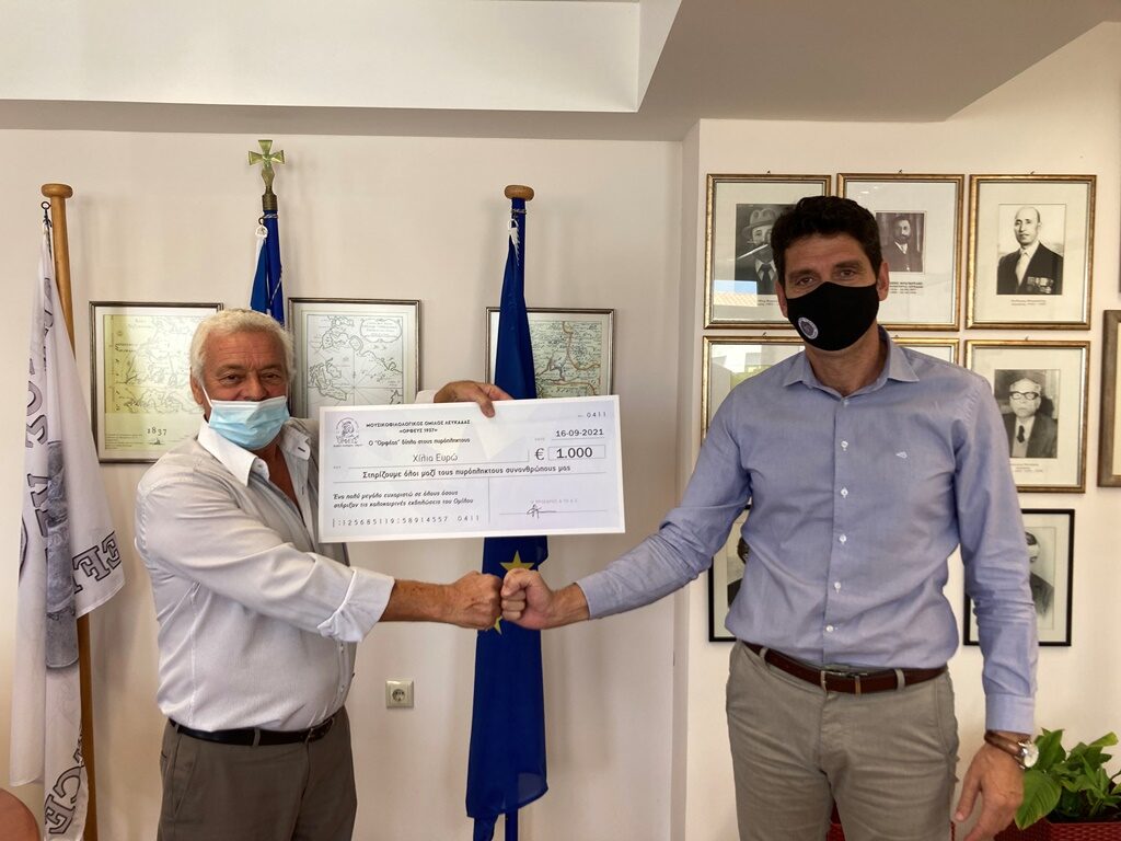 Το Διοικητικό Συμβούλιο αποφάσισε τις κρίσιμες ώρες όπου η χώρα μας δοκιμάστηκε από καταστροφικές φωτιές να σταθούμε έμπρακτα στο πλευρό των συνανθρώπων μας που επλήγησαν και να διαθέσει ένα μέρος των εσόδων από τις δυο εκδηλώσεις προκειμένου να ανακουφιστούν οι πληγέντες. Αυτό και καταφέραμε, έτσι την Παρασκευή,17 Σεπτεμβρίου 2021 κατατέθηκε στον ειδικό τραπεζικό λογαριασμό της Περιφερειακής Ένωσης Δήμων Ιονίων Νήσων για την υποστήριξη των πυρόπληκτων το ποσό των 1000 Ευρώ.