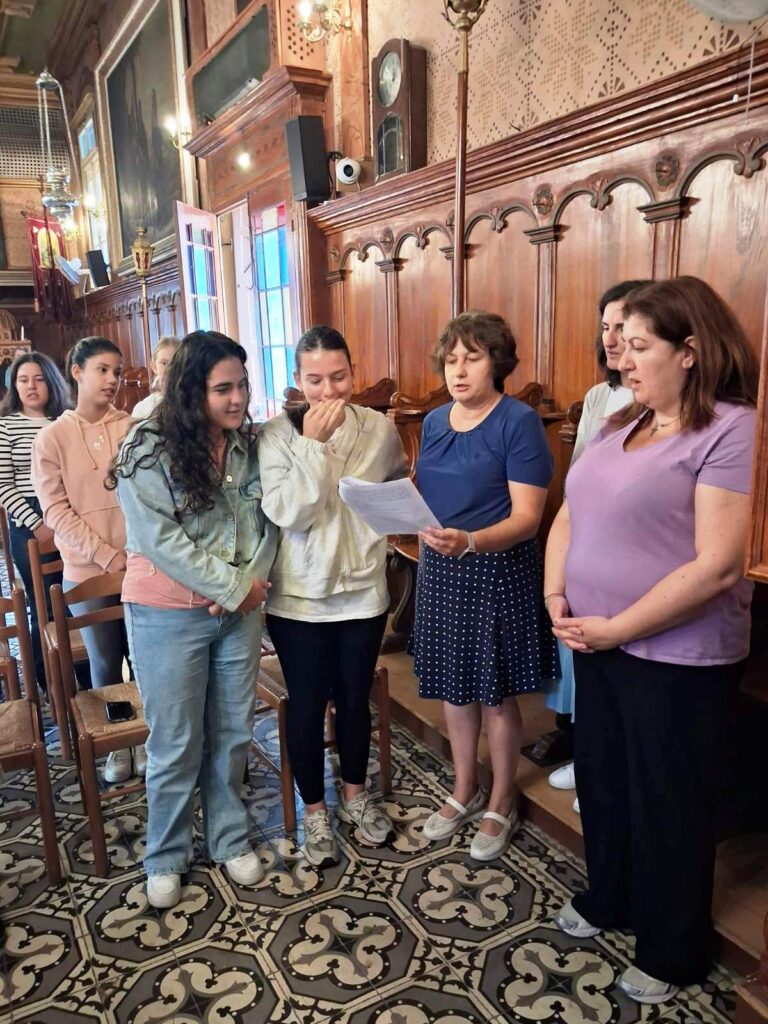 βήματα στήν «αὐλή τῶν λογικῶν προβάτων», τήν Αὐλή τοῦ Χριστοῦ, τήν Ἐκκλησία Του. Μαθαίνουν νά ἐκκλησιάζονται καί νά κοινωνοῦν· νά διακονοῦν στό Ἱερό Βῆμα καί νά βλέπουν τόν Ναό ὡς χῶρο δικό τους, οἰκεῖο· νά ἀναστρέφονται ἐκεῖ «σάν στό Σπίτι τους». Μαθαίνουν νά βρίσκουν τούς φίλους καί τίς φίλες τους κάθε Σάββατο ἤ Κυριακή στή συνάντηση τοῦ «κατηχητικοῦ», ὅπως τό ἤξεραν οἱ παλιότεροι –στή «Νεανική Συντροφιά» τῆς Ἐνορίας, ὅπως λέγεται σήμερα ἤ σέ κάποια ἄλλη δραστηριότητα πού διεξάγεται ἐκεῖ.