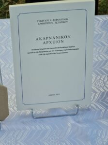 Σε μία όμορφη εκδήλωση στον αρχαίο Θύρρειο την Κυριακή 27/6/2021, έγινε η παρουσίαση του βιβλίου  του συμπατριώτη μας Γιώργου Φερεντίνου, καθηγητή-ιστορικού  με τίτλο: “Ακαρνανικόν Αρχείον“, που συνδιοργάνωσε το κέντρο κοινωνικής μέριμνας και ανάπτυξης Δήμου Ακτίου -Βόνιτσας και η εφορεία Αρχαιοτήτων Αιτωλοακαρνανίας -Λευκάδας, στον αύλειο χώρο του μουσείου Θυρρείου.