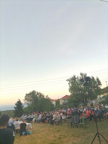 Στην εκδήλωση ο Πρόεδρος της Κοινότητας Θυρρείου Χρήστος Παλούκης παρέδωσε την τιμητική πλακέτα στην εξαδέλφη του Συγγραφέα κα Νίκη Φερεντίνου – Χούσου.