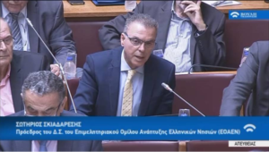 Σωτήρης Σκιαδαρέσης : ‘’ Η εφαρμογή του μεταφορικού ισοδύναμου δεν μπορεί να είναι περιορισμένη και αποσπασματική αλλά καθολική’’- Ομιλία του Προέδρου του Επιμελητηρίου Λευκάδας στη Βουλή.