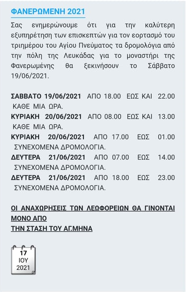 ΑΝΑΚΟΙΝΩΣΕΙΣ - ΔΕΛΤΙΑ ΤΥΠΟΥΤΟΠΙΚΑ ΝΕΑ Τα δρομολόγια του ΚΤΕΛ για το Μοναστήρι της Φανερωμένης το εορταστικό τριήμερο του Αγίου Πνέυματος Από admin - 18 Ιουνίου 2021 0 890 FacebookTwitterPinterestWhatsApp