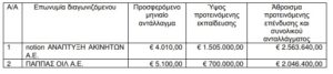 Συνεπώς ο διαγωνιζόµενος «notion ΑΝΑΠΤΥΞΗ ΑΚΙΝΗΤΩΝ Α.Ε.» υπέβαλε την υψηλότερη συνολική προσφορά.