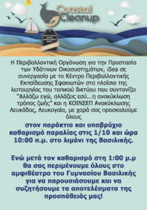 Υποβρύχιος και Παράκτιος Καθαρισμός στη Βασιλική Λευκάδας, 1η Οκτ 2017